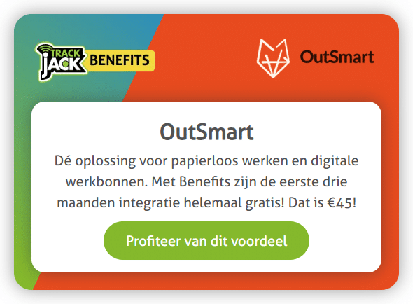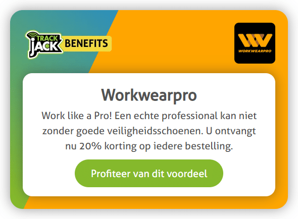 Avec TrackJack, vous obtenez bien plus qu'une simple visibilité sur votre flotte. Vous économisez également sur les frais de carburant et d'entretien. Mais saviez-vous que vous pouvez également faire des économies grâce à la remise client TrackJack ? De belles offres soigneusement sélectionnées par nos partenaires, que nous avons le plaisir de vous proposer en tant qu'utilisateur TrackJack.