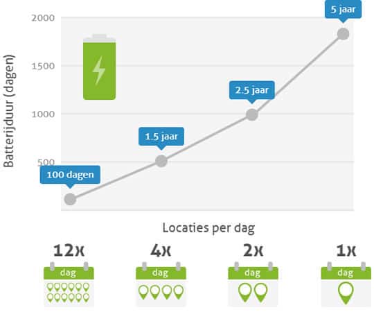 De plus, vous pouvez définir vous-même la fréquence des mises à jour de localisation. Cela vous permet d'adapter l'utilisation à la situation et de prolonger l'autonomie de la batterie lorsque c'est possible.